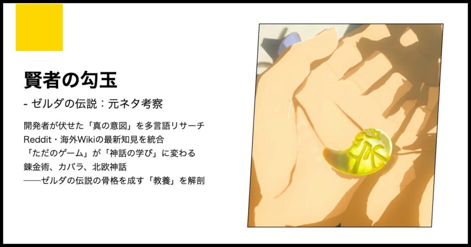 本記事では、ゼルダの伝説に登場する秘石の元ネタを徹底考察します。日本神話の三種の神器である勾玉や、メソアメリカ文明における翡翠の葬礼儀式との驚くべき符号を解き明かします。2026年最新の公式設定集が明かすデザインの核心である龍の胎児まで、ゲーム体験を深める歴史的背景をリサーチに基づき解説します。