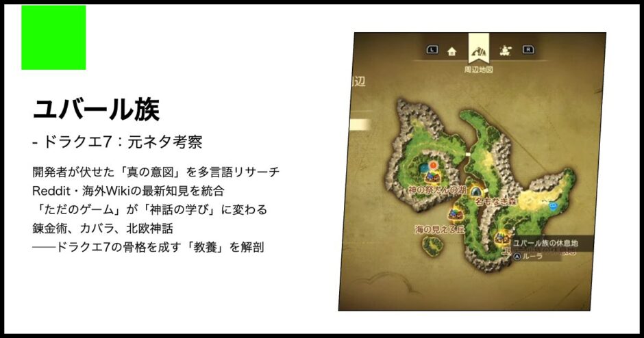 DQ7で最も印象的なユバール族の背景を徹底解説します。旧約聖書の音楽の祖ユバルから、実在の移動民族ロマとの驚くべき符号、さらには日本神話天岩戸との儀礼的共通点まで。2026年最新作DQ7 Reimaginedで明かされた大人キーファの役割も含め、彼らの放浪の真意を紐解く完全保存版です。