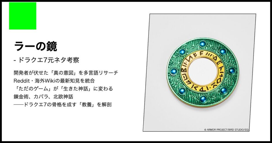 2026年最新リメイク『ドラゴンクエストVII Reimagined』の視点から、シリーズ屈指の重要アイテム「ラーの鏡」を徹底考察。エジプト神話、ギリシャ神話、日本最古の歴史書に隠された三つの原典を特定し、魔王オルゴ・デミーラの欺瞞を暴く鏡の真の役割と、最新システムとの意外な関連性を紐解きます。